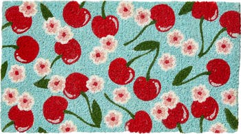 Introducing our delightful Cherries Coir Mat, a timeless classic that has been a favorite for over 30 years! This charming doormat features vibrant hand-painted red cherries set against a beautiful blue background, bringing a touch of summer cheer to your entryway. Crafted from high-quality, hand-spun coir, this mat is not only visually appealing but also durable and functional. Measuring 30 inches in length, 17 inches in width, and 1 inch in height, it fits perfectly at your doorstep, welcoming guests with a warm and inviting design.