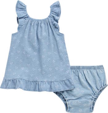 Keep baby feeling breezy in this cotton dress featuring a bleach-washed cherry pattern and matching bloomers.