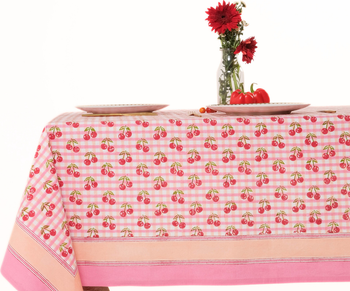 Serve up a splash of sweetness with our Cherry Blockprint Tablecloth. Playful scarlet cherries tumble across crisp, cotton ground—think vintage orchard postcards reimagined for a modern table. Whether you’re plating pastries at brunch or cocktails at dusk, these tablecloths turn every bite into a little taste of summer. Expertly block-printed by an eighth generation family of artisans in Jaipur, the artisans are stewards of a craft that has been passed down to them generation after generation. From the master block makers who carve the blocks in a village to the hands that print the cloth, there are many hands that go into making each piece. By selecting this handmade piece, you contribute to reviving craft and supporting artisan communities. Thank you for supporting our artisans. Material: 100% Cotton Dimensions: 60" x 90" inches, 70" x 120" inches