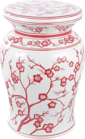 Timeless and chic, white and red Chinese porcelain never goes out of style. Our urn-shaped ceramic garden stool is decorated in a classic cherry blossom pattern. Use them indoors or out as a side table, garden seat, or plant stand.