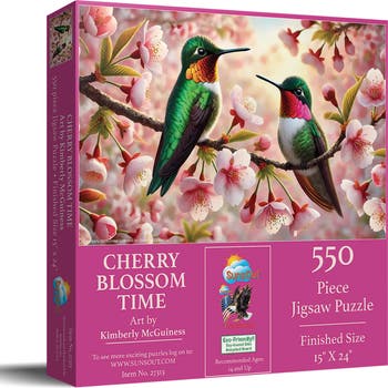 Cherry Blossom Time 550 pc Jigsaw Puzzle by SunsOut - 550 Piece Jigsaw Puzzle - Completed Size: 15" x 24" - Puzzle Artist: Kimberley McGuiness - Interlocking Pieces and Durable Construction: SunsOut jigsaw puzzles feature interlocking pieces that fit securely, making assembly easier and reducing frustration. -Ages: 15 years and older - Perfect for adults and seniors. SunsOut puzzles ensure high manufacturing standards ensuring their commitment to quality and customer service. - SunsOut puzzles use soy based inks, high quality puzzle board. As this is a jigsaw puzzle: assembly is required and batteries are not required.