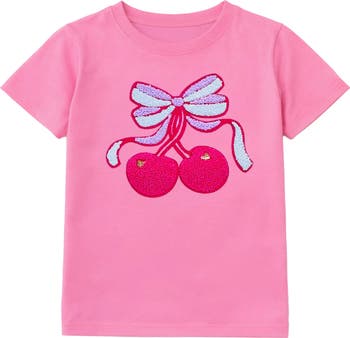 Brighten any outfit with this cheerful short-sleeve tee made from breathable organic cotton. The charming cherry bow appliqué adds instant personality—perfect for tweens who want to express their fun, fruity style.