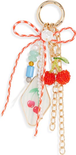 Bright cherry charms and playful bead accents bring retro-inspired sweetness to this cluster bag charm.