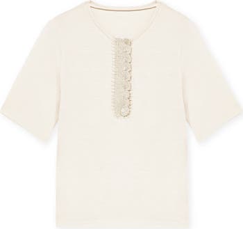 The Fortela Women's Cotton T Shirt Sky Blue Crochet Detail Regular Fit Serafino stands out with its refined, hand-crocheted detail. Crafted entirely from pure cotton, its uniqueness lies in the commitment to incorporating artisanal details. This T-shirt ensures a comfortable and relaxed fit, moving away from tight lines. Fortela enhances your look with handcrafted details and environmental awareness, thanks to the use of eco-friendly dyes.