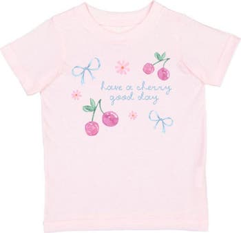 Sweeten her everyday look with this soft pink tee featuring playful cherries and dainty bows, made for smiles all day long.