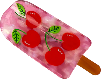 Add a playful splash of summer fun to your everyday style with the Cherry Popsicle Hair Claw. Imagine stepping out on a warm day, your hair perfectly styled and adorned with this delightful accessory that brings a smile to your face and compliments from everyone you meet. This isn't just a hair clip; it's a miniature work of art, handcrafted with a unique splice technique that brings its vibrant cherry popsicle design to life. The exquisite details, from the juicy red cherries to the sparkling crystals, make this a truly special piece that stands out. Designed for medium hair types, its sticky teeth offer a secure yet comfortable hold, keeping your hairstyle looking fabulous all day long, whether you're running errands, enjoying a family outing, or simply want to add a touch of whimsy to your look.