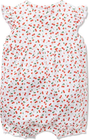 Sprigs of bright cherries dot a supersoft and breathable pima-cotton romper that's finished with cute ruffled shoulders.