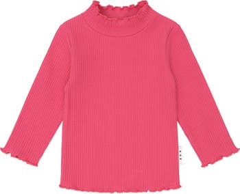 A versatile layering piece in classic cherry rib This long-sleeved top is made from extra thick ribbed cotton to keep little bodies warm and features a sweet lettuce edge detail. A true wardrobe essential.