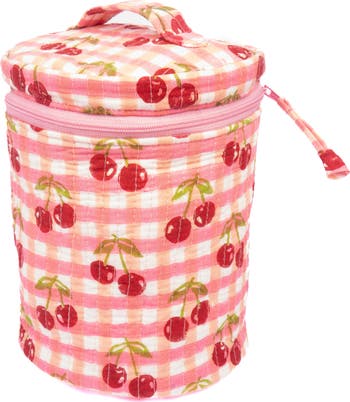 Inner Child Cherry Round Upright Makeup Bag, Main, color, Red Gingham