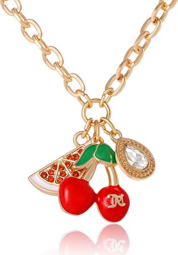 Sweet and sassy, this Juicy Couture necklace features cherry and watermelon pendants with crystal accents for a fun pop of color. A must-have for fruity fashion lovers and statement makers.