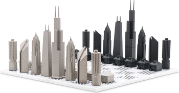 Founded by two London-based architectural designers, Skyline Chess takes iconic architecture from around the world and pits the greats against each other, bringing impeccable design and gamesmanship into a beautiful set. The chess set of Chicago’s most iconic structures; including Marina City, The Crain Communications Building, Two Prudential Plaza, The John Hancock Center and Willis Tower.