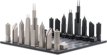 Founded by two London-based architectural designers, Skyline Chess takes iconic architecture from around the world and pits the greats against each other, bringing impeccable design and gamesmanship into a beautiful set. The chess set of Chicago’s most iconic structures; including Marina City, The Crain Communications Building, Two Prudential Plaza, The John Hancock Center and Willis Tower.