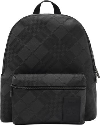 Burberry House Check rendered in tonal jacquard brings subtle pattern to this compact yet still roomy backpack detailed with an Equestrian Knight-embossed leather patch.