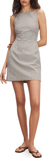 Fresh gingham checks decorate this strappy minidress cut from smooth stretch-cotton with a nipped-in silhouette that defines your curves and flaunts your legs.