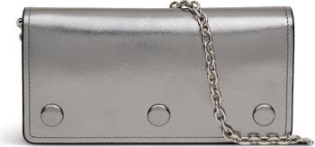 One way to make a wallet even more practical is to make it a clutch bag too. That’s what our Designers did when they created the Chester Row wallet, a slim, flapover shape in metallic grain leather with a detachable wristlet chain strap and pocketed interiors. It puts style and functionality at the tip of your fingers.