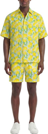 Brighten your summer wardrobe with this men's button-down shirt featuring a vibrant tropical lemon print—zesty, fresh, and perfect for sun-soaked days. Pair with chino shorts and sandals for beach-ready ease, or with slim linen pants and loafers for resort evenings. Wear open over a white tee for a laid-back layered look.