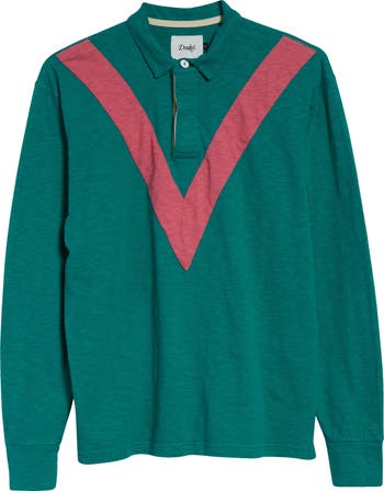 A single, vibrant chevron stripe frames the placket of this vintage-inspired rugby shirt that's made for modern comfort in cotton flamé fabric with a slightly slubby texture.