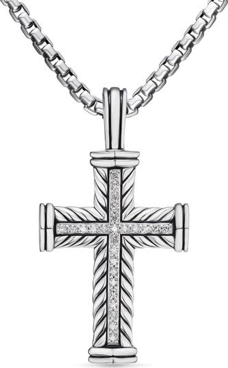 Central lines of diamonds enhance the icy shine of this textured cross pendant you can style on your favorite chains.