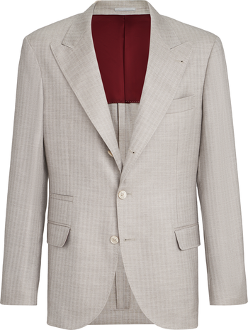 Cashmere and silk chevron is a very lightweight fabric that combines comfort, precious natural fibers and sartorial taste. It is ideal for wear during the shoulder seasons. A cupro half lining completes the garment.