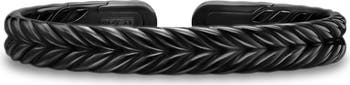 Chevron is skillfully reinterpreted in this black titanium cuff bracelet inspired by ancient architectural patterns.