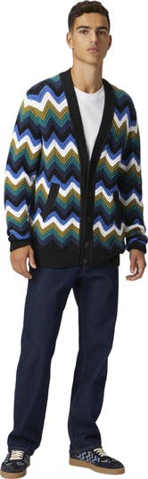 Missoni Chevron Knit Cardigan With Pockets And Contrasting Piping, Main, color, Blue