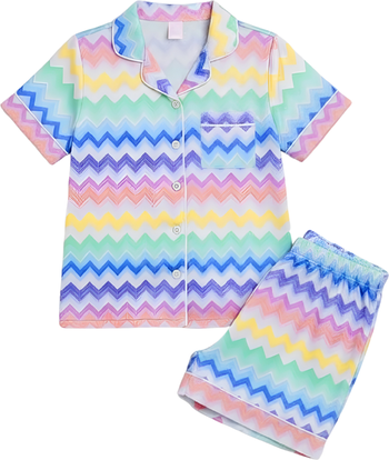 This item is designed to be tight fitting to meet Children's Sleep Safety standards. Get ready for the coziest nights ever in this vibrant girls chevron pajama set. Crafted from buttery-soft jersey fabric that feels like a dream against your skin, this tween pajama set brings serious style to bedtime and comfort with an elastic waistband short.