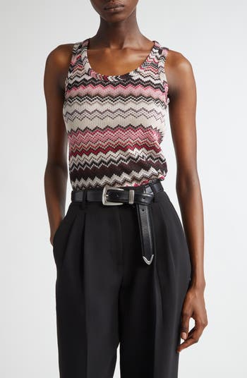 The Italian fashion house's signature chevron stripes animate this knit tank illuminated with subtle metallic shimmer.