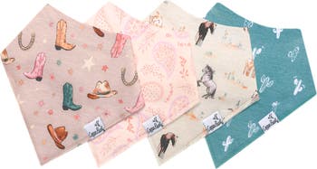 Protect baby's clothes from drooling and spills with these bandana bibs made of a soft cotton knit with an absorbent fleece backing.Boone Assorted 4-Pack Bandana Bibs (Baby)