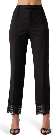 Slimming straight legs shape the silhouette of these polished high-waist pants punctuated with romantic lace.