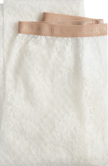 Accessorize like one of Alessandro Michele's retro-eclectic runway characters with these sheer tights fashioned from exquisite floral lace. Tonal branding on the waistband nods to the iconoclastic designer's new digs at 'Chez Valentino.'