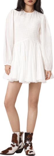 A sweetly smocked bodice gives way to a flirty, flouncy skirt in a wear-everywhere dress made from a soft cotton blend.