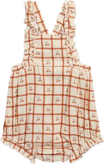 Bring a vintage vibe to baby's wardrobe with this sweetly ruffled romper made from fresh, breathable cotton covered with a checkered cherry pattern.
