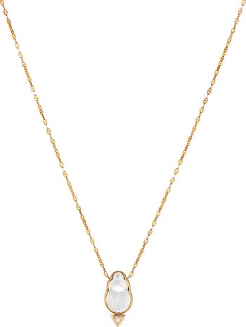 A luminous mother-of-pearl scarab pendant glows as it anchors this etched 14-karat gold chain that brings an element of opulent mystique to your ensemble.