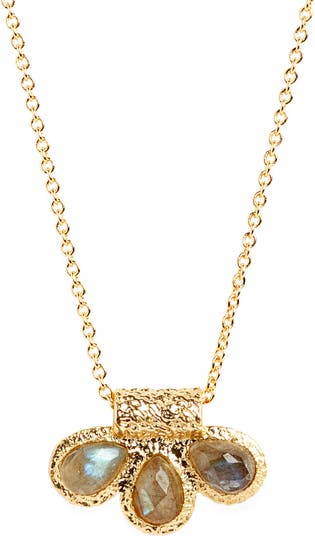 A trio of bezel-set stones shine in the textured pendant of this 18-karat gold-vermeil necklace.