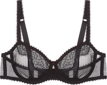 Simple yet stunning, this Italian-made demi bra flaunts sheer tulle cups romanced with eyelash lace and picot trim.