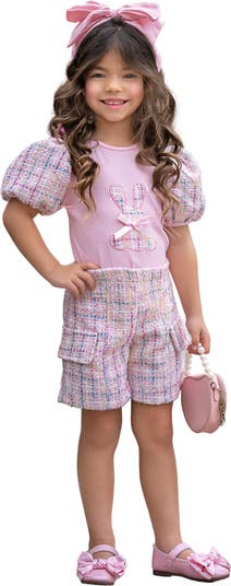 Dress your little fashionista in this elegant and playful bunny-themed tweed short set, perfect for springtime charm!