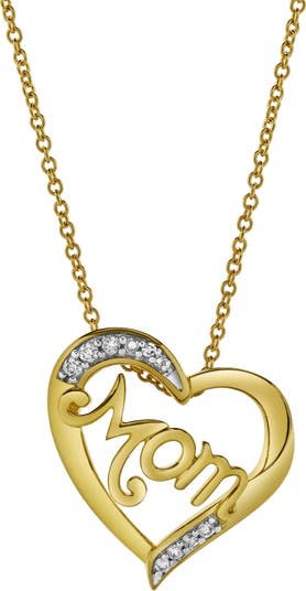 Chic Mom Heart Diamond Pendant Necklace in 10K Yellow Gold