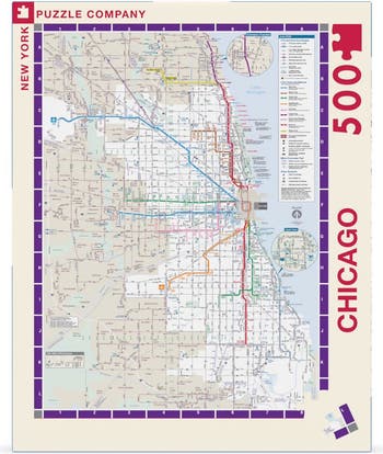 CTA Transit - Chicago Subway Map. 500 Piece Jigsaw Puzzle. Made in the USA. Recommended Age: 10+ Years