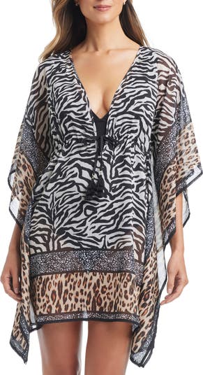 Tassel-tipped ties let you adjust the fit of this breezy cover-up dress in semisheer chiffon that lets you show off your favorite swimwear.