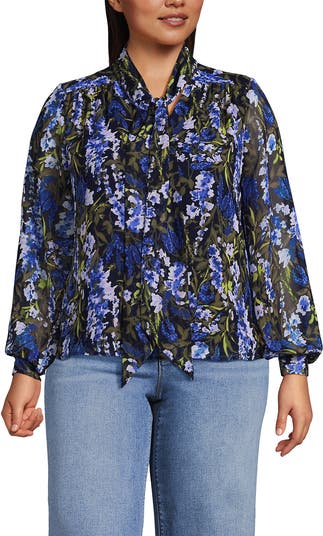 This chiffon blouse blends romantic detailing with everyday versatility. Designed with a relaxed fit and classic shirt length, it drapes beautifully for an effortless feel. The band collar features a removable tie, for a quick change to your look — around your neck for polish or removed for ease. Delicate shirring at the shoulders and yoke adds movement and softness, while smocked cuffs give the sleeves a subtle, gathered finish. It's light, floaty and refined.