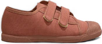 A solid hue adds everyday versatility to a sturdy canvas sneaker topped with double hook-and-loop straps for easy on and off.