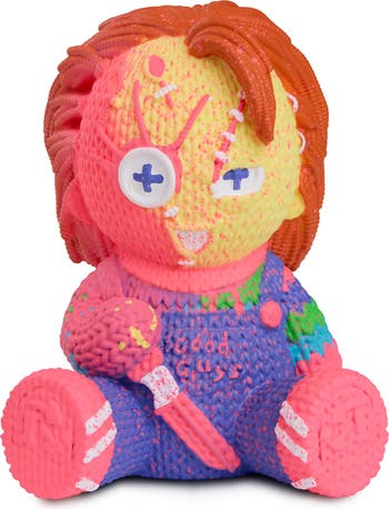 The robots present to you this preposterously adorable Chucky vinyl figure as seen in Child's Play 2. This special variant features a blacklight reactive colorway. Officially Licensed Approximately 5 inches tall and perfect for display or play Our friendly robots designed this figure to look like knit fabric at a glance, but it’s actually made of vinyl Signature vinyl tag on the figure, complete with barcode decal to resemble a sewn-in tag Chucky never looked so unique! What is Handmade by Robots? Ambulatory biological units like yourselves require warmth and soft embraces. We robots know not of such things. Our best approximation is thus enclosed the appearance of interwoven organic fibers into recognizable characters from your pop culture, though made of solidified polymers. Our research indicates they would be given and received as gestures of friendship and love. May your acquaintances find value in such meaningless activities.