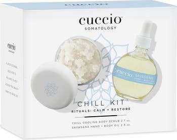 Chill Kit is the ultimate self-care gift kit including our Chill Cooling Body Scrub and Savasana Hand + Body Oil. Set Includes: Chill Cooling Body Scrub, 2.7 oz./ 80 mL Savasana Hand + Body Oil, 2.5 oz./ 75 mL Why We Love It: No Artificial Fragrance Animal Cruelty-Free Paraben-Free