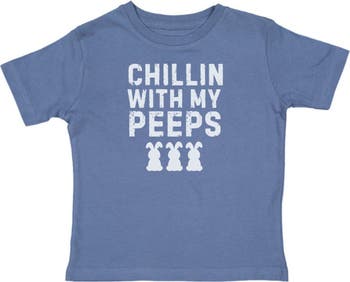 The Chillin With My Peeps Easter Short Sleeve T-Shirt is a fun and festive t-shirt for kids celebrating Easter!
