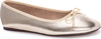 A delicate vamp bow and slender toe lend timeless appeal to a versatile ballet flat that will complement your polished looks.