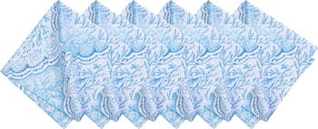 Chinoiserie Coast Reversible Graphic Print Machine Washable Hemstitch Napkins Set of 6