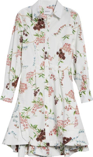 Erdem Moralıoğlu conjures the imagined past lives of nineteenth-century Swiss medium Hélène Smith with this pleated organic cotton–poplin shirtdress beautifully illustrated in flora inspired by popular chintz patterns from the court of Marie Antoinette—one of Smith's incarnations.