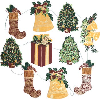 All the iconic symbols of the holiday are strung along this festive garland's length. Made from recycled materials, it's screenprinted by hand on both sides by talented artisans in Jaipur to give your decorations a charming handcrafted touch.