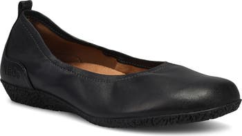 Smooth, burnished leather emphasizes the timeless look of this season-spanning ballet flat fitted with a cushioned footbed that offers both arch and metatarsal support.