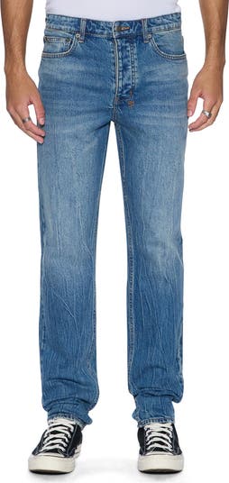 Slim but not skinny, these faded-blue jeans sit below the waist and taper below the knees to give you a clean, streamlined profile that stays comfortable day and night. They're made of soft cotton denim with a touch of stretch and finished with branding details embroidered above the back right pocket.